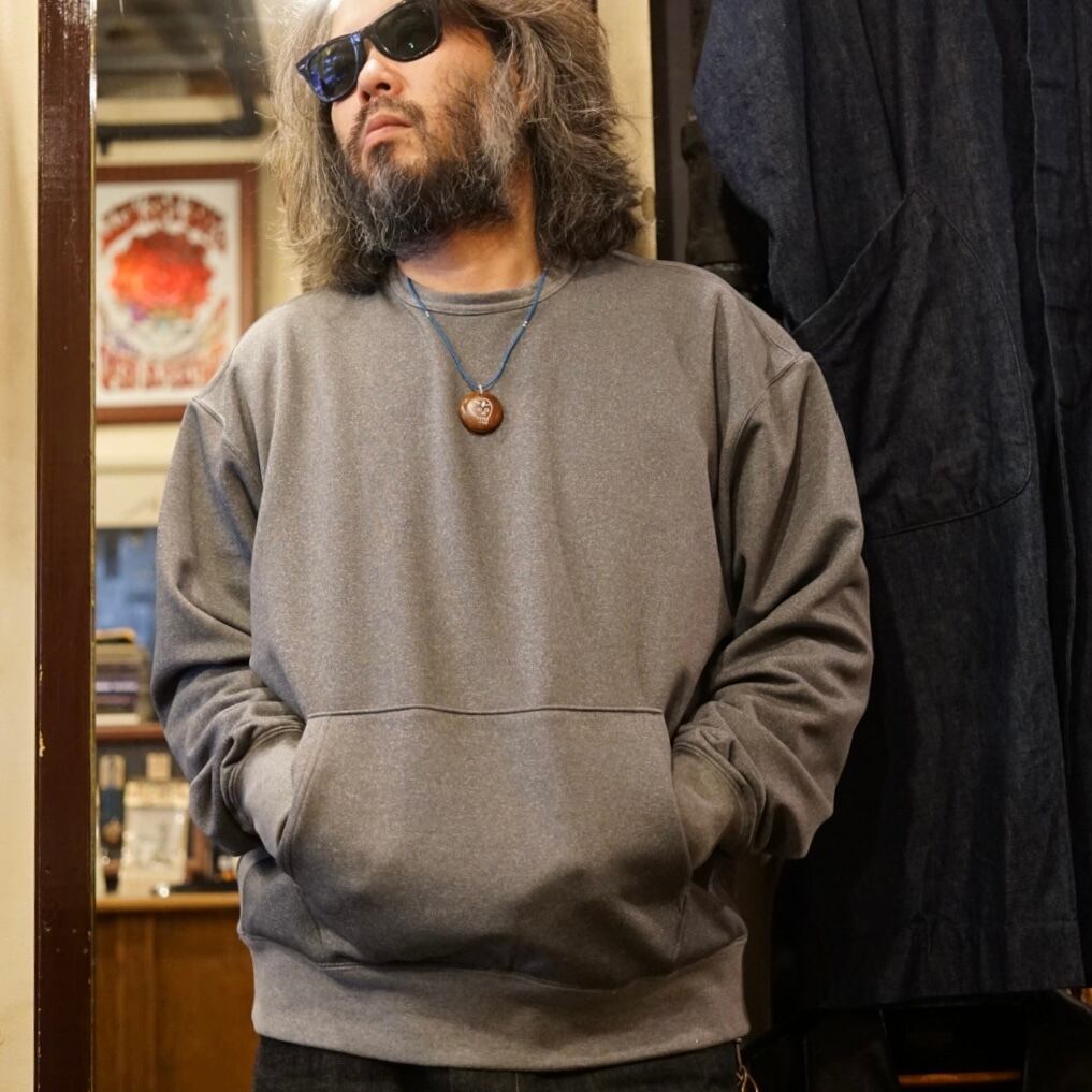 クルーネックタイプのスウェット然したデザインではありますが、やや大き目のカンガルーポケットが裾に付きます。